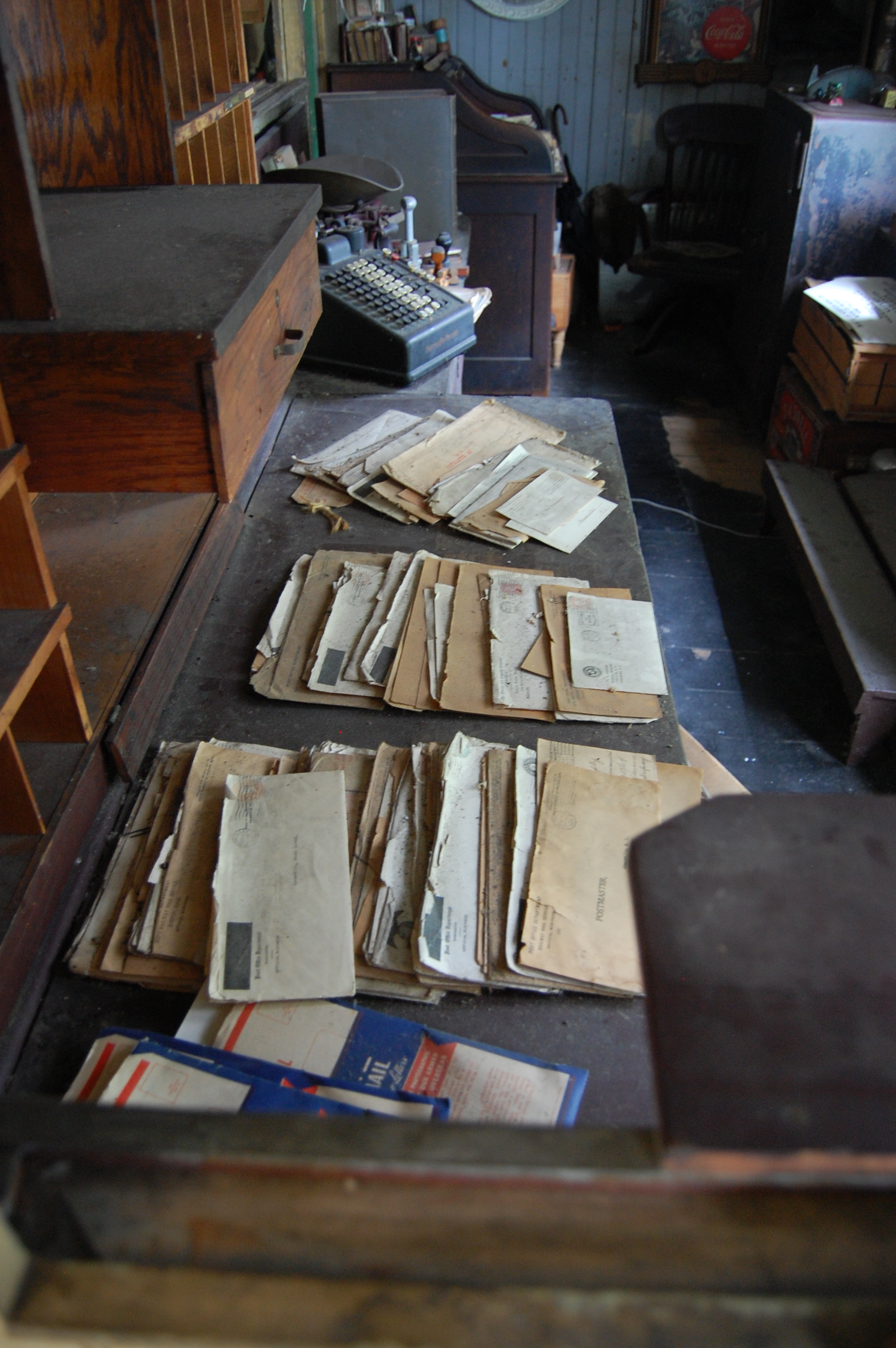 Here are some photos of the inside and outside of the General Store. Although it is called a general store, it is much more than that. It is really a museum and antique shop. There are some groceries for sale, but not much. The original post office has been preserved on one side. There are many artifacts and relics inside. Here is a sample: