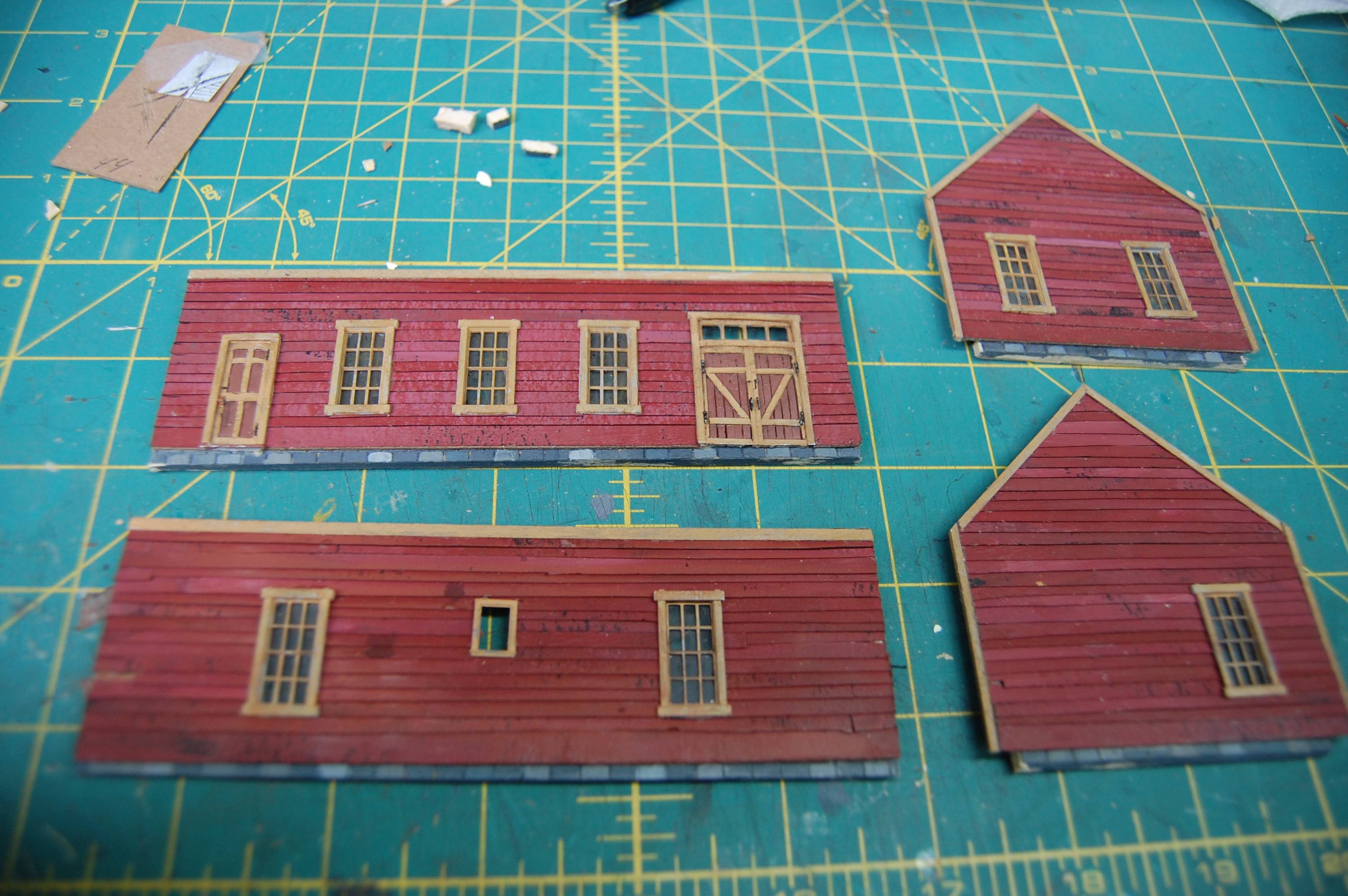 The next steps are to prime and paint the castings, cut the window and door openings, and get everything ready for assembly. In the next photo I have prepped all the walls and added a recessed foundation using wood stone sheets from Monster Modelworks.