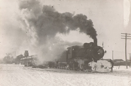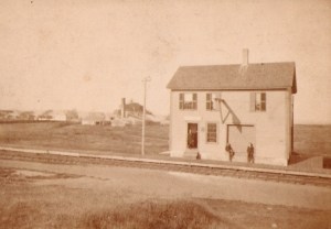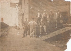 Another view of the depot at an earlier time. The ramp the workers are standing on in the above picture has not yet been built on the right side of the building.